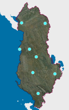 Air monitoring network with measurement stations in several cities of the country for 2020. The data are in accordance with the standard "State Standards for Technical Specifications of Geospatial Information in Albania - Topic: Infrastructure for environmental monitoring.