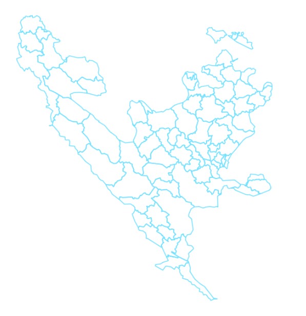 The data set of administrative units according to the Register of Spatial Units contains boundaries, names and codes for the following spatial units: the State of Bosnia and Herzegovina, the entities of the Federation of BiH and Republika Srpska and the Brčko District, cantons in the Federation of BiH, and local self-government units in the Federation of BiH.