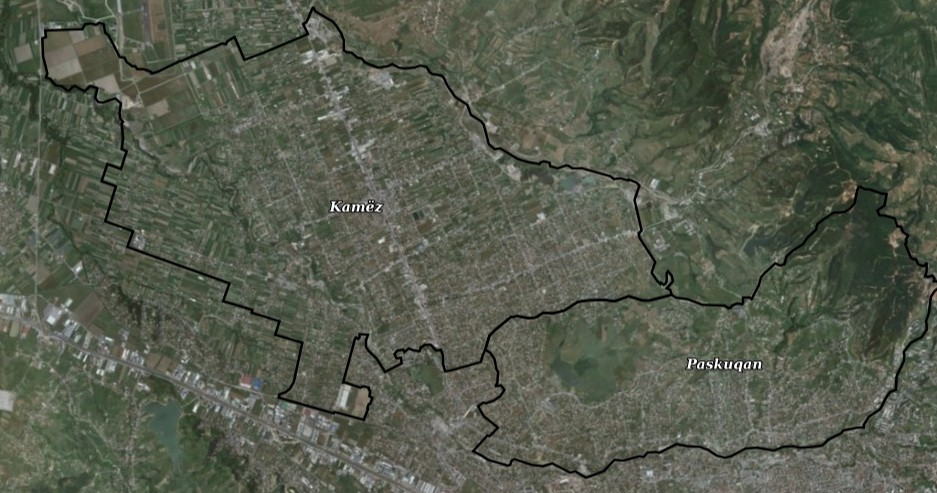 Order 4 (Administrative unit boundaries), Kamez Municipality approved by Decision of the Municipal Council No. 13, dated 15.02.2021 "On the approval of the updated map of administrative-territorial boundaries "For the Municipality of Kamez", in implementation of article 93, point 2, of law no. 139/2015 "On local self-government". The data are in accordance with the standard approved by the Council of Ministers no. 1078, dated 23.12.2015, On the approval of the document "State Standards for Technical Specifications of Geospatial Information in Albania, Topic: Administrative unit boundaries".