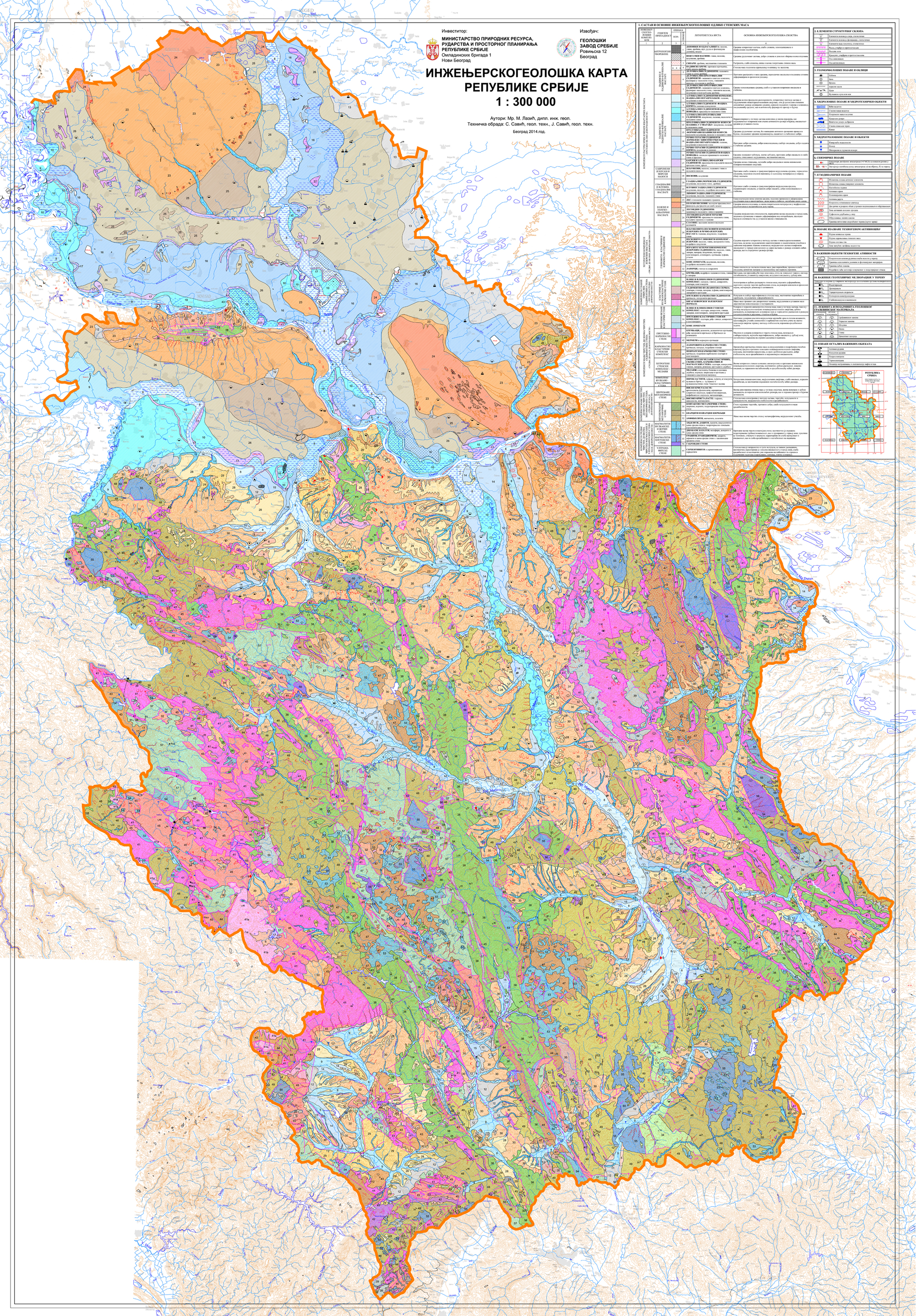 Engineering map of the territory of Serbia is an inspection map of basic engineering complexes with designated zones of exodynamic processes and occurrences, as well as technological activities (meliorative sanitation facilities, zones of technological pollution, etc.