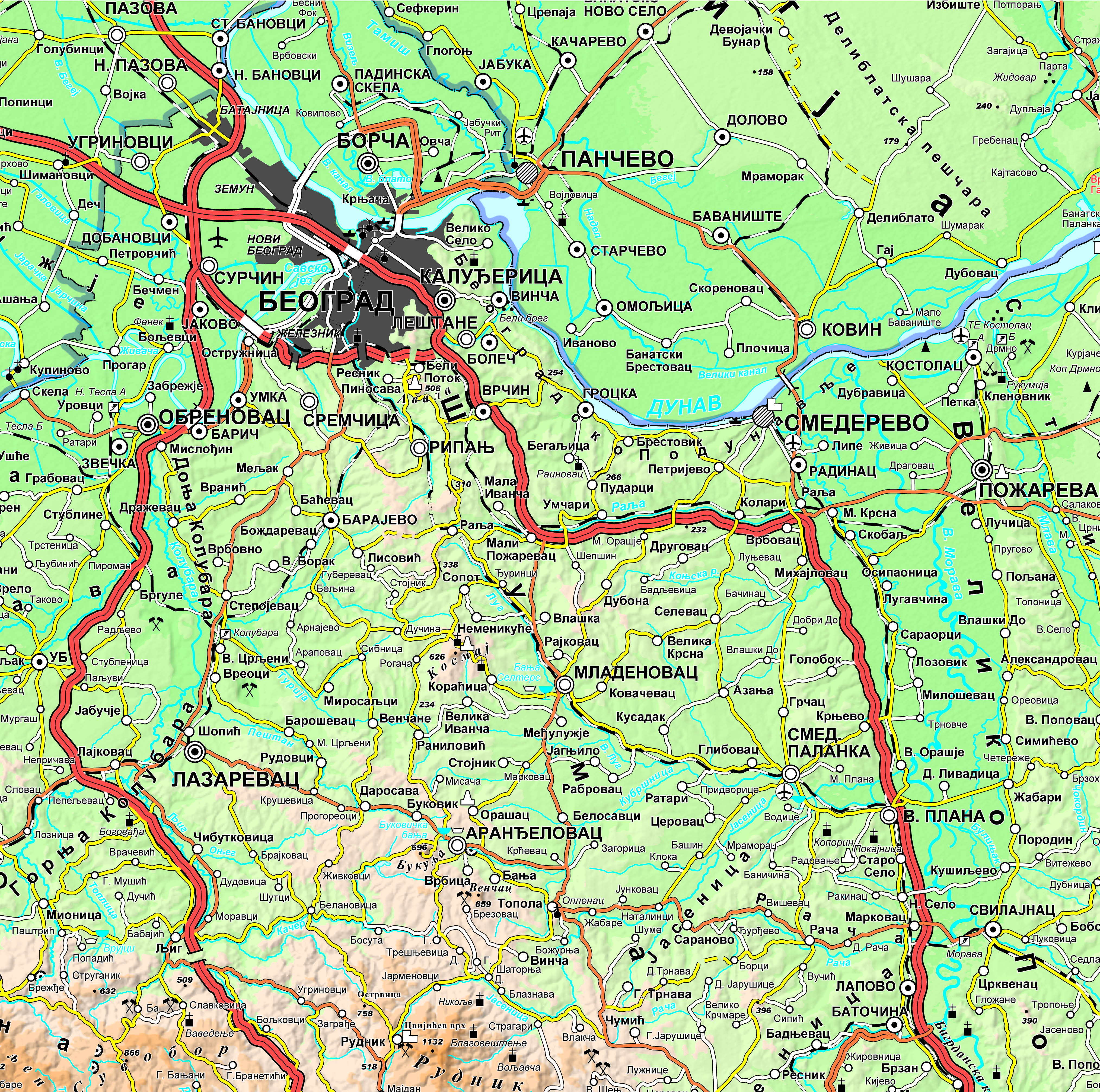 Geographic and tourist map of Serbia at a scale of 1: 300 000 is a digital geographic map based on the cartographic database scale 1: 250 000, which represents a set of entities modeled by natural and man-made objects on the Earth's surface, that satisfy the conditions for display in the ratio 1 : 300 000.